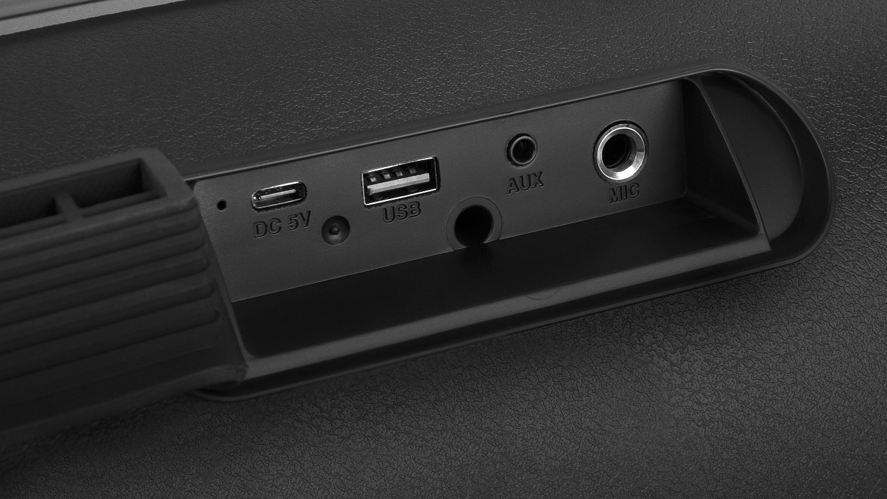 - Złącze AUX umożliwia podłączenie głośnika do wykorzystania z PC, TV i innymi źródłami dźwięku