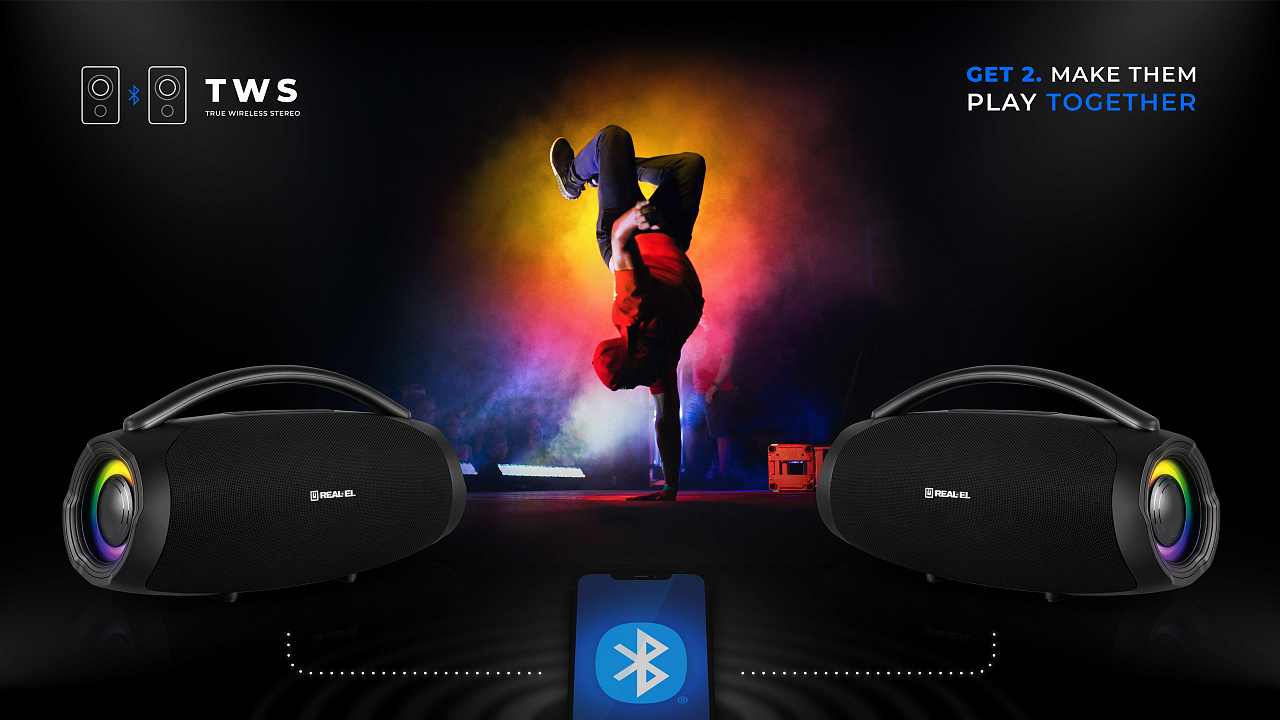 Dla fanów muzyki, którzy dbają o wygodę, stworzyliśmy REAL-EL X-755. X-755 to nowoczesny boombox Bluetooth z oświetleniem RGB.