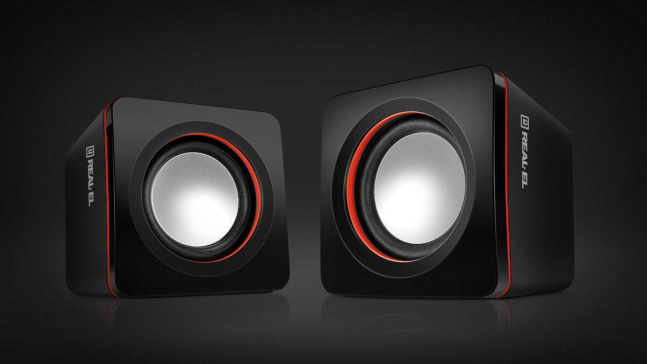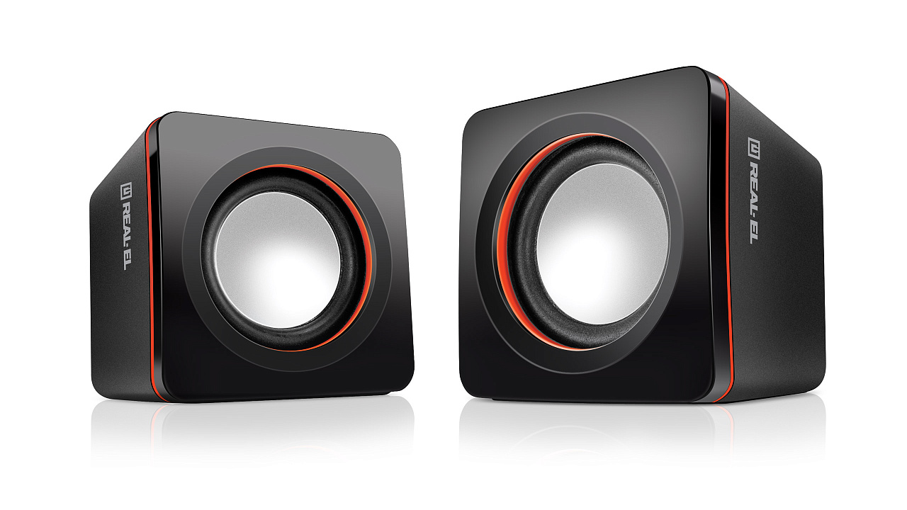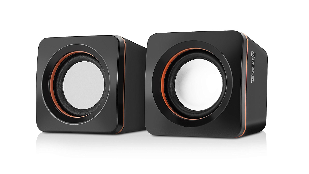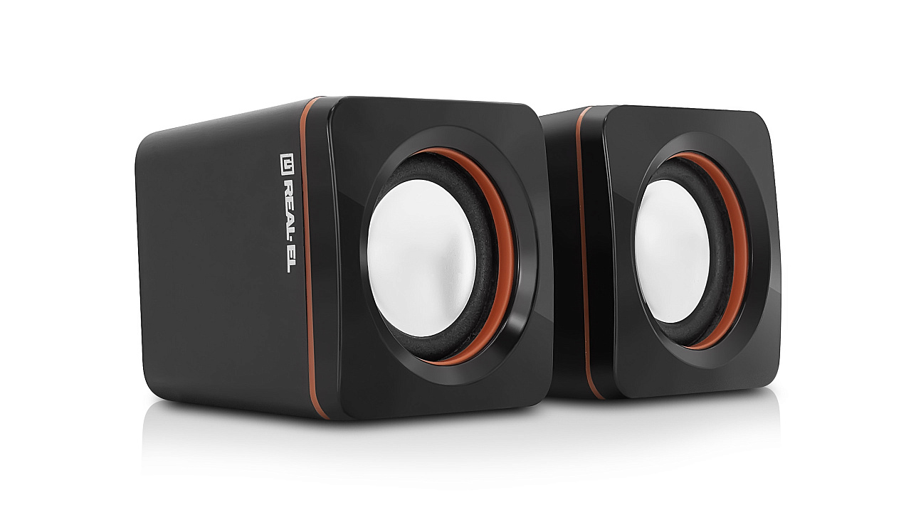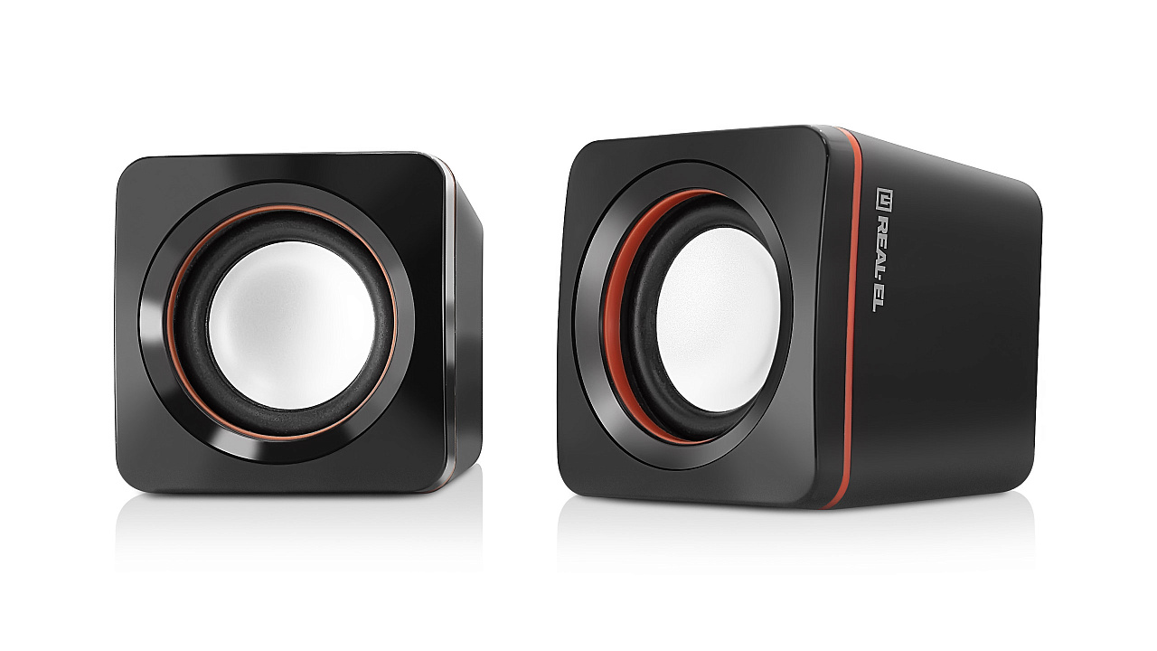 Zestaw głośników REAL-EL S-13 - to lekkie i dostępne rozwiązanie do kwestii dźwięku komputera (lub laptopa). Zasilanie głośników odbywa się poprzez port USB komputera, laptopa lub zasilacza 5V DC za pomocą wbudowanego kabla USB.